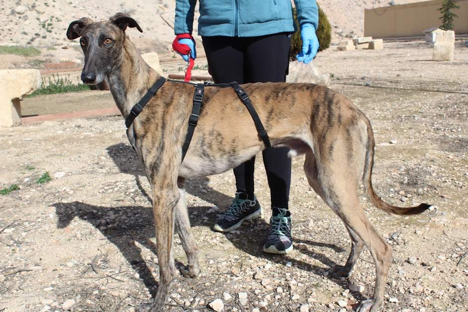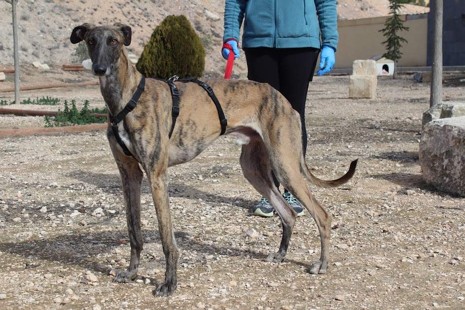 Geranio es un galgo espectacular. En la protectora se ha mostrado como un perro muy sociable con otros perros, relacionándose bien con ellos. En los paseos por la calle también se comporta correctamente y, por lo que hemos observado hasta ahora, no parece mostrar miedos o traumas.
