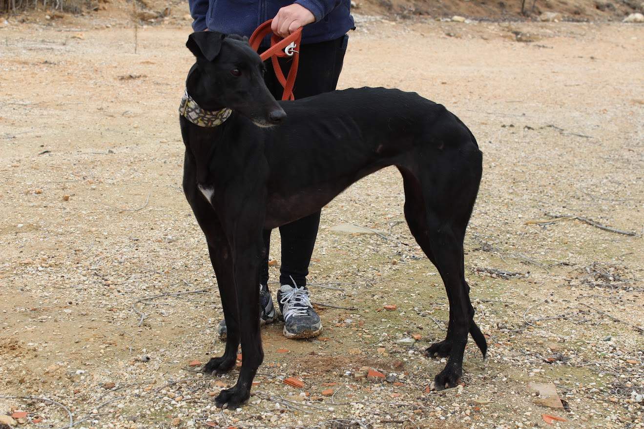 Valquiria es una galga de carácter bueno y equilibrado. Al principio puede mostrarse un poco precavida, observando y tomando su tiempo para sentirse segura, algo habitual en muchos perros que han pasado por cambios importantes. En cuanto percibe que no hay malas intenciones, se relaja y se muestra tranquila.